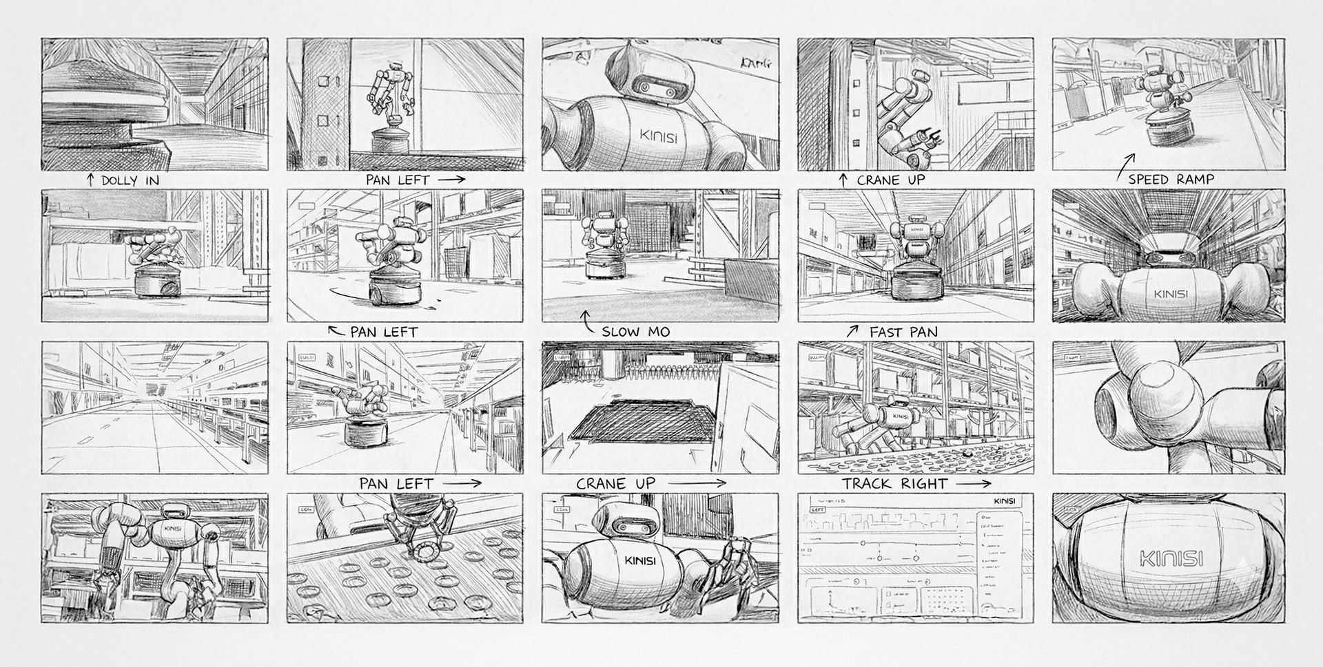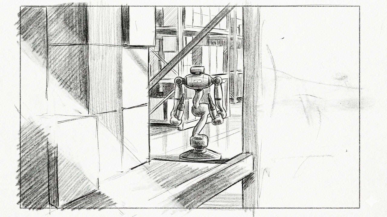 Every sequence was carefully planned before animation began. The storyboard defined the camera language, pacing and narrative structure, ensuring each shot clearly communicated KR1’s capability and purpose. This stage allowed us to test the story early, align expectations and avoid guesswork later in production.